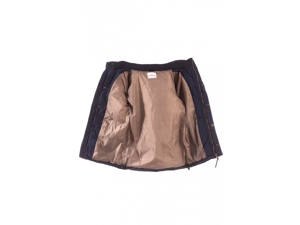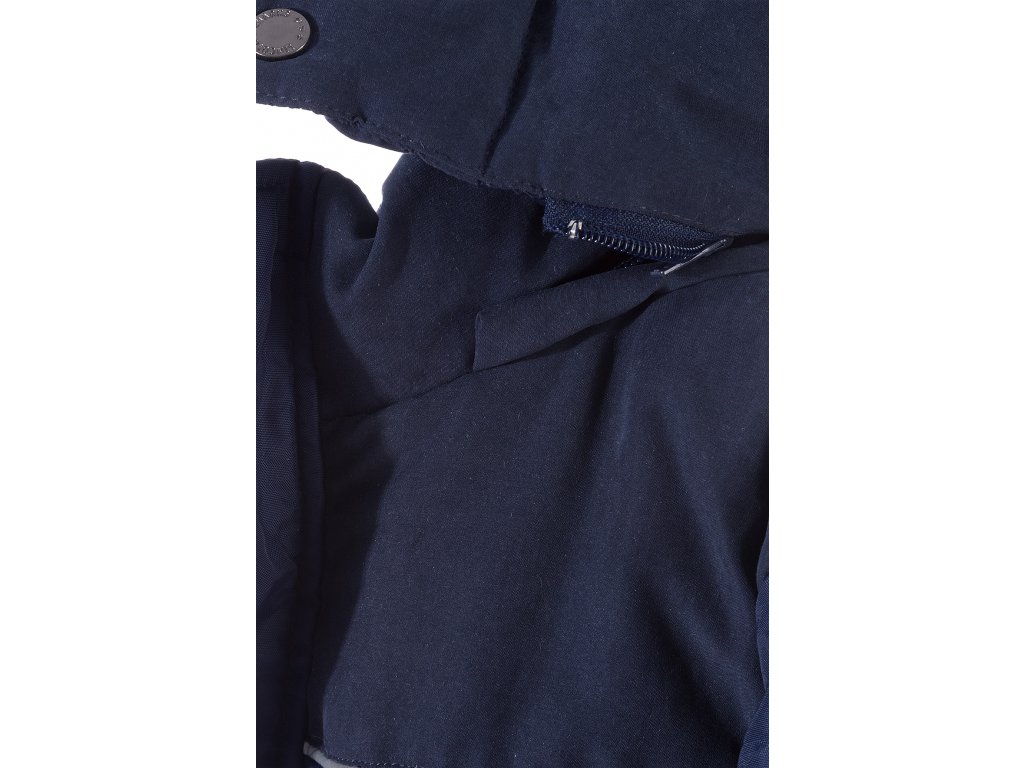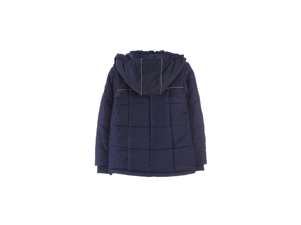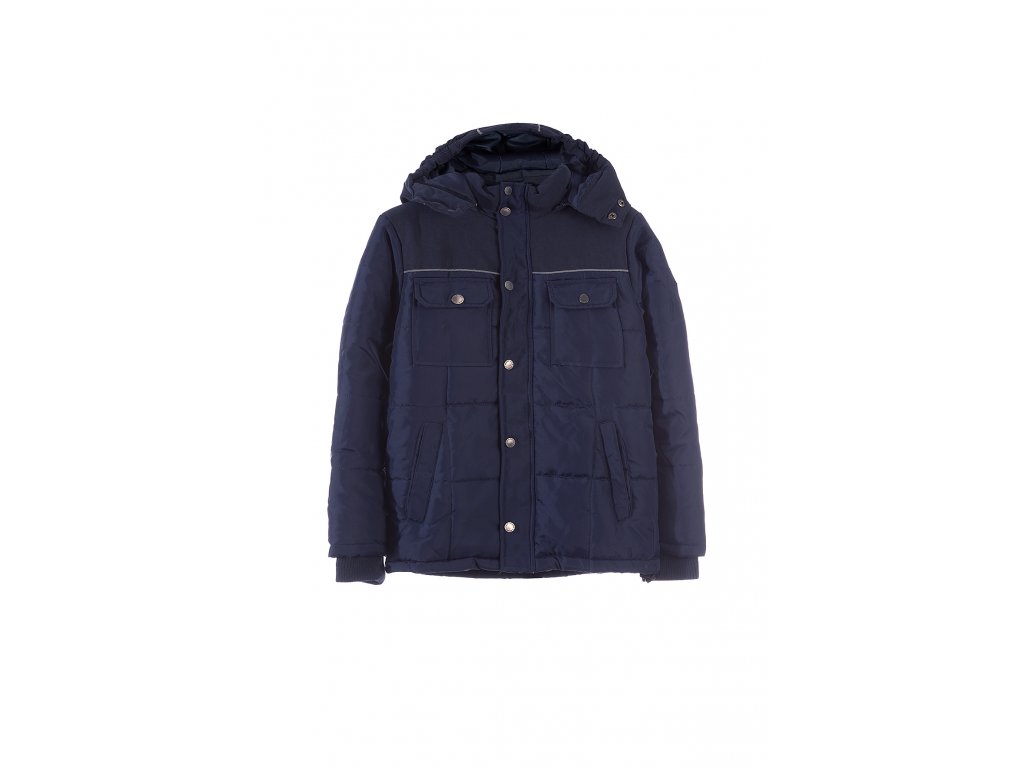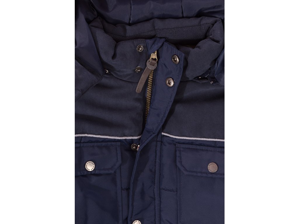 Elegantní teplá bunda pro chlapce se skvěle hodí pro každodenní sportovní i elegantní stylizace. Díky klasické tmavě modré barvě bude bunda zaručeně ladit s ostatními částmi oděvu. Tato chlapecká prošívaná bunda je vyrobena z odolné látky, která poskytuje vynikající ochranu proti větru a dešti. Buda má zip skrytý pod látkovým panelem s ozdobnými kovovými cvoky. V přední části jsou boční kapsy a také menší kapsy s klopami. Vysoký stojatý límec také pomáhá udržovat správnou teplotu v chladných dnech. Velkou kapuci lze v případě potřeby odepnout, můžete také regulovat její velikost. Oděv má jednoduchý, spíše volný střih, který chlapci zaručuje pohodlné nošení.