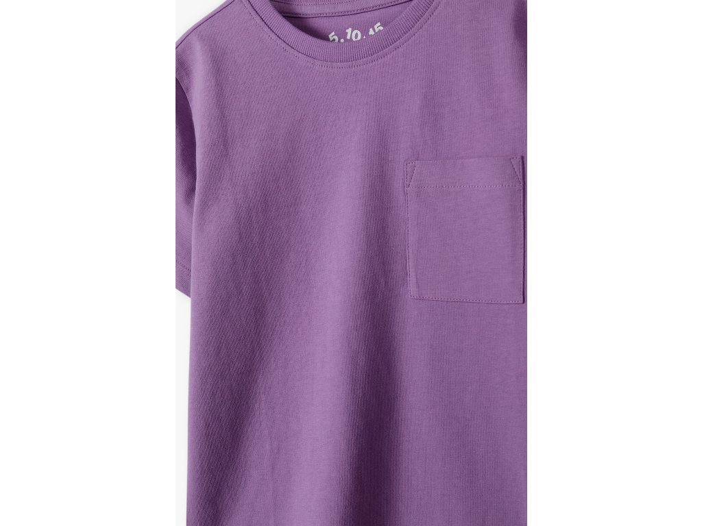 Chlapecké tričko s krátkým rukávem a s kapsičkou na přední straně je vyrobeno z kvalitní jemné bavlněné látky. Díky tomu poskytuje chlapci pohodlí po celý den, nedráždí a je také velmi prodyšná, což je v horkých dnech důležité. Jednou z největších předností tohoto produktu je aktuální fialový odstín.